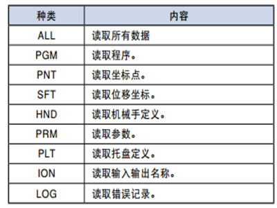 ・當作為 ALL 文件以及參數文件讀取數據時,控制器必須處于伺服關閉狀態。另外,讀取數據之后,將變為 原點復歸未完成狀態。