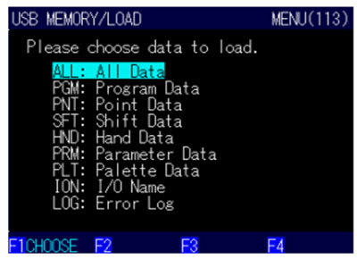 請通過光標鍵選擇要加載的數據種類,然后按下 F1